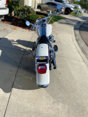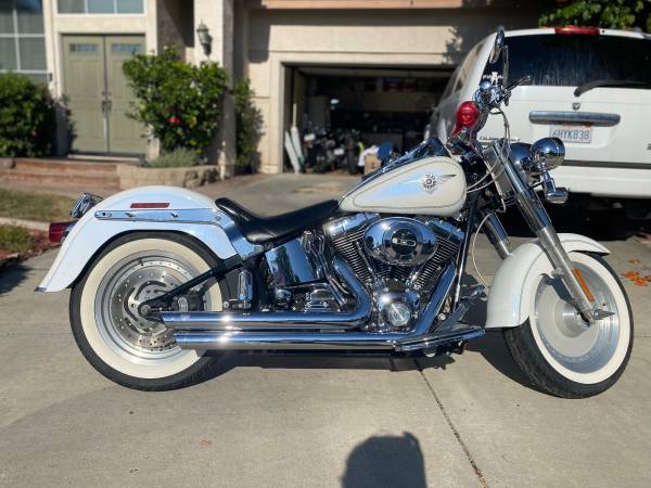 Selling My 2004 Harley Davidson Fatboy with Only 20K Miles. Has Pearl White Paint Custom Handlebars, Vance & Hines Exhaust, Fuel Injected, Lots of Chrome, Windshield, Leather Sadlebags. New Battery, Oil, Primary and Transmission Oil Recently Changed. White Walls, LED Fuel Gages, many extras Bike has Been Garage Kept. Possibly Willing to Trade for Sportster 1200 or Dyna. 6192274496