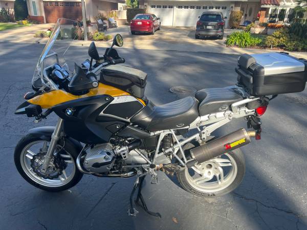 2008 BMW R1200GS. Multiple upgrades including Denali lights, tall windshield, wave brake rotors, GoPro mount with power, cushion grips, Pro Taper brake and clutch levers, wind deflectors on hand guards, loud Hella horn, deer whistle, Corbin heated rider and passenger seats, sidestand pad, high grip flat foot pegs, Akrapovic exhaust, flashing brake lights, and factory top and side cases (the ones that expand). 80,800 miles. Rear drive shaft recently replaced at San Diego BMW Motorcycles. Very clean, have all service records. $4900
