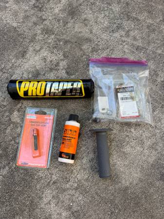 All for $35 Pro taper handlebar cushion Renthal hand throttle handlebar grip Ktm vented gas cap attachment ENDURANCE SEALANT Banshee carb kit only used the gasket, needle and jets $35 for all...