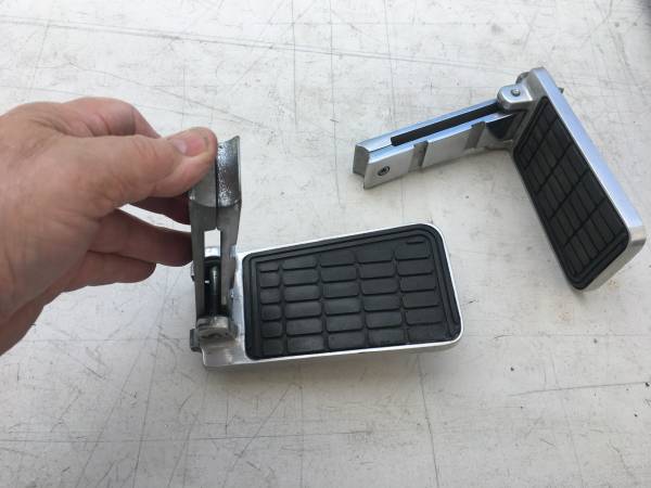 These are a Rare to find GL1200 rear passenger Adjustable foot boards. (Star Brand) They allow you to ride with a young passenger,and are adjustable so their feet aren't just hanging off the seat!....