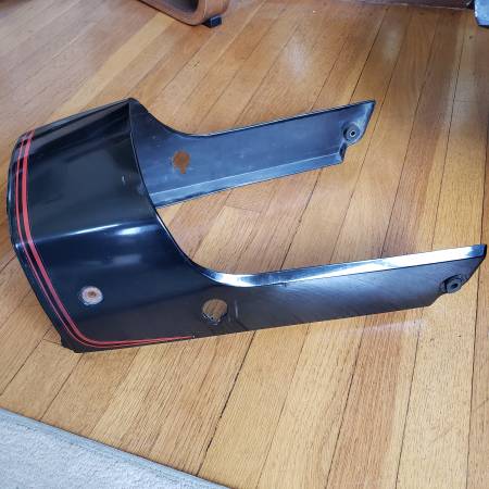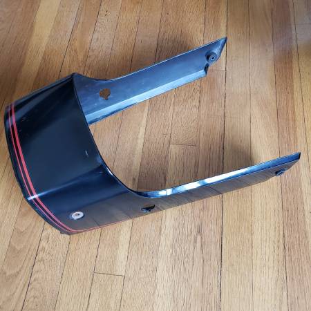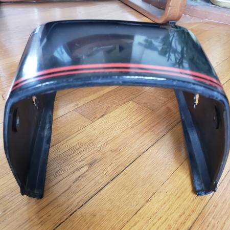 Black with red pinstripes, very good condition. No manufacturer or other identifying markings, but believe it's for a late 70's or early 80's era Honda - probably a CB model.