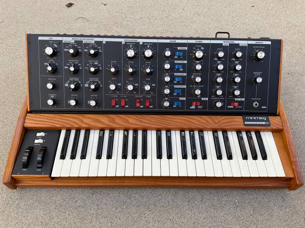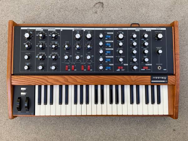 Great condition, never gigged, kept in smoke free house. Only issue is the previous owner used clear nail polish to mark his settings, but bless you are right up on the keyboard you don’t even notice them. Extremely low serial number. Local pick up only. The Moog Minimoog Voyager Old School features a monophonic analog sound engine with 3 VCOs, a classic 24dB/octave ladder filter, and two ADSR envelope generators. It includes 44 velocity-sensitive keys (no aftertouch) on a Fatar keyboard, a pitch bend and modulation wheel, and Control Voltage (CV) I/O, but lacks the digital patch memory and MIDI found in standard Voyagers. The "Old School" variant has a hinged panel and a hardwood cabinet, evoking the simplicity of the original Minimoog Model D. Great condition, never gigged, kept in smoke free house. Only issue is the previous owner used clear nail polish to mark his settings, but bless you are right up on the keyboard you don’t even notice them. Extremely low serial number. Local pick up only.