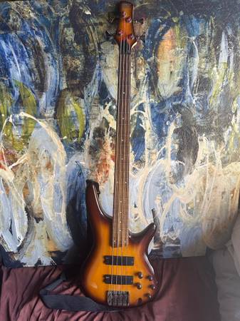 Ibanez Soundgear 4 string fretless bass. Hardly used, like new comes with a gig bag.