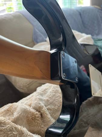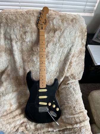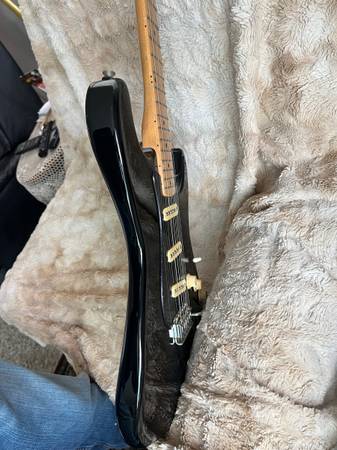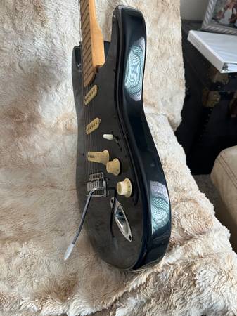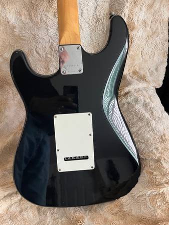 David Gilmour Strat style with Maple neck, Black body and White pickups.