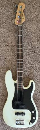 Fender Squire P/J (White) or Johnson P-Bass (Red). Both play and sound great. $225 each or $400 for both. Johnson P-Bass has upgraded controls with an Orange Drop and also has EMG pickups.