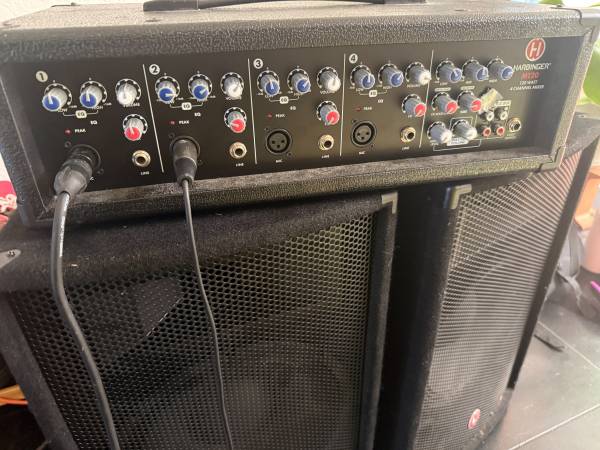 Harbinger M120 4 Channel PA Mixer and Speakers. Works great.