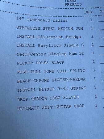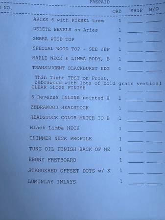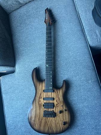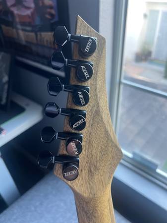 Hey guys. Up for grabs is my Kiesel Aries guitar in mint condition. It has a special zebra wood top and matching headstock specially selected for this guitar by Jeff (the ceo of the company. Black Lima body and neck. Thin neck profile. Glow in the dark fretboard markers and side markers. Push/pull pick up splitter. I included the pics of the two pages of specs I paid for on this guitar.
