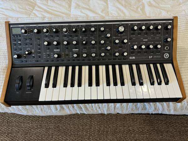 Used Moog Sub 37 Synthesizer in great condition—fully functional and well-maintained. This powerful analog synth features 2 oscillators, 37 velocity-sensitive keys, a classic Moog ladder filter, and extensive modulation options with 256 presets. Ideal for studio or live performance, the Sub 37 delivers rich, warm tones and deep sound-shaping capabilities. Includes arpeggiator, step sequencer, and CV inputs for modular integration. A premium choice for serious synthesists seeking Moog’s legendary sound.