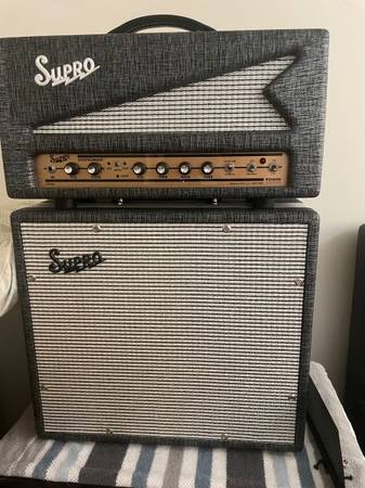 Awesome setup.Supro Statesman 50 watt head,Black Magic 1x12 cabinet with an Alnico Cream Speaker. I hate to sell this one..Killer tone.I will trade for a P-Bass.
