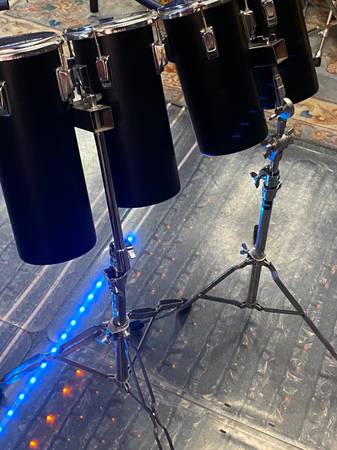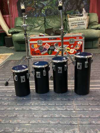 Super rare mint condition early 80's Tama Octobans. Set of 4 high pitched with two stands so you can change the configuration to a row of four drums instead of the typical two stacked on top of two. I'm willing to split them up into sets of two if that's what you want. Split the price $350 for each set of two with a stand. See pics.