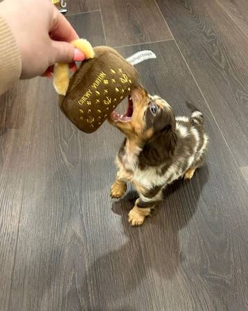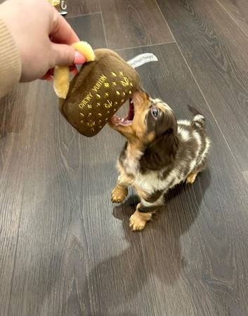 This adorable 8-week-old Dachshund is ready to brighten someone’s home. Potty trained and comfortable in a kennel, with all vaccines up to date. Contact me with any questions!