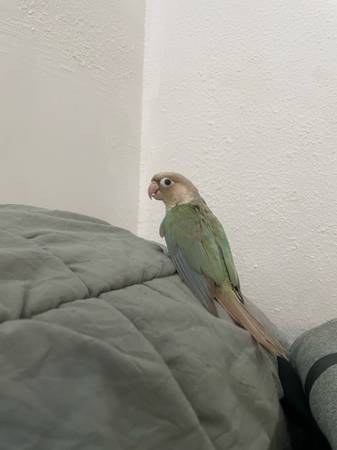 Cinnamon turquoise conure DNA tested , 1 Year old Very friendly with other birds, eats pellets /seeds Semi tamed , Text for more info