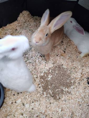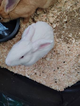 2 Bucks 1 Doe Purebred Flemish Giants. Albino and Grey Buck and Buckskin Red Doe. Tame and love to be interacted with. 13 1/2 weeks old. Rehoming FEE will Apply.