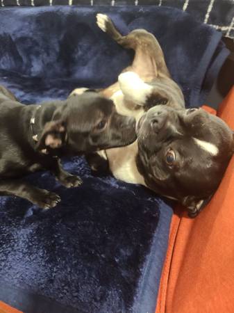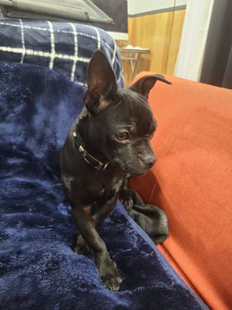 Hi I have a sweet and playful female Boston terrier mix with chihuahua that my grandma can no longer keep, the pictures are with her and her dad the white Boston terrier she is the smaller black Boston terrier mix she's super playful and energetic, she loves to chase balls, she is not currently potty trained asking a rehoming fee 350