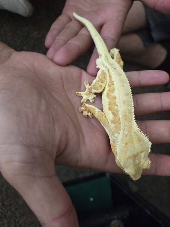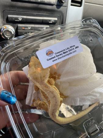 Got a male creamsicle lily white crestwd gecko got him from the urban reptile come snag this guy for $400 with cage 350 without. Text if interested