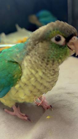 Baby and turquoise are looking for a loving home they are 8 months old I hand feed them both and are tamed baby the smallest is super loving and such a baby blue the dark one is more like on his own both love to be out of cage love fruits and veggies will come with a cage and asking 600 with cage 500 without cage I’m firm on the rehome fee! 92084