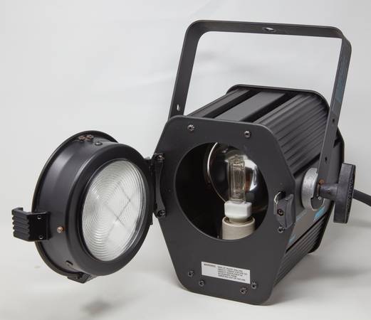 Up for sale are a quantity of Strand Fresnelite 6" halogen-tungsten fresnel lens lights. They are Strand part number 12081. These are in excellent condition and were all produced in 2008. They were hung once above a stage, used for several productions, then taken down and put into storage. They have never been in a rental inventory and were never tossed into a bulk bin -- as such they are all in incredible condition as pictured.