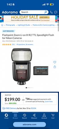 2x Flashpoint R2 Zoom Li-On III flashes (built in transceivers with lithium ion batteries and LED lights). 1x Nikon SB-910. $525 for all 3. I can throw in some Magmod accessories for 2 of the...