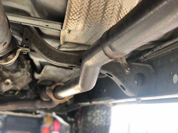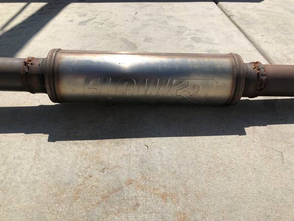 I have replaced this system with a new custom from Ed Hanson’s Muffler Service. Throaty sound when on the throttle. End and tip are tucked up tight for better off road clearance. All welds and bends performed by Andy’s Muffler Service in Allied Gardens. I have the “Y” pipe without Cats if you want that too.