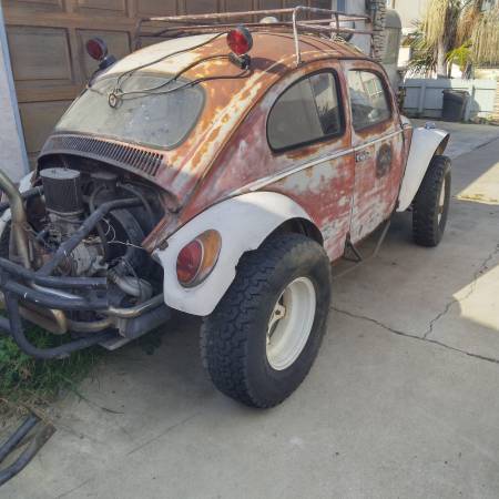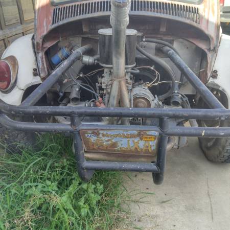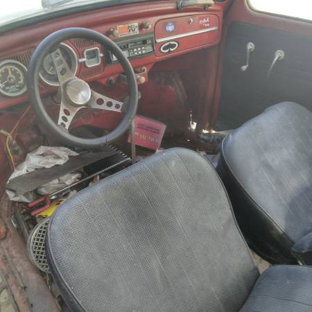 Giving up on the old bug . NOT running!!! I'm parting it out but it is priced to sell compleat. Not running, rusty floor pan,( I have an Xtra pan). Cool roof rack, nerf bars, front and rear bumpers, tow hitch, one piece side windows .high back seats. The motor is a 1776 dual port with a big cam and a Webber carburetor. Case savers and a stinger exhaust. Snow tires on Jackman old School rims...not running project!!!