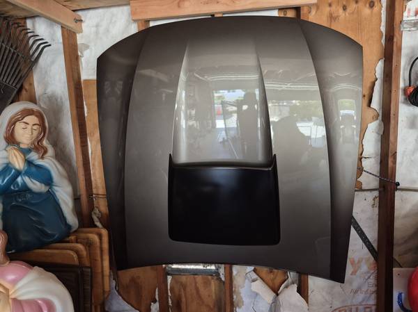 We took this off of our 2002 Mustang GT we replaced it with an R Cobra hood. The paint is metalic grey an original Ford Mustang color. It is stunning. Had to sell the Mustang this year. My husband passed Feb of 2024. His car won over 100 trophies at local and SoCal car shows. I also have some carbon fiber parts. I don't have pictures of those yet nor do I know exactly what I have. I am open to trades for the following: