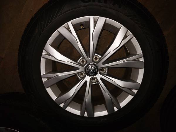 OEM VW Wheels Almost New 17” Tires and Rims Lug bolt pattern 5x112 Tires size 215 x 65 R 17 Wheels will fit VW models: Tiguan, Passat, Taos. Rims will fit: Jetta, Tiguan, Golf, Taos, Passat, Beetle,...
