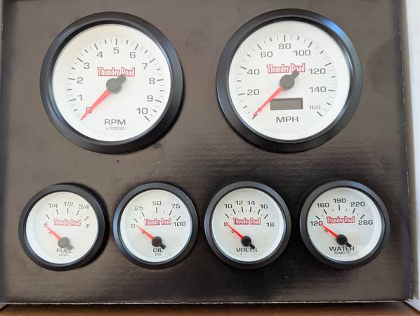 Carbon fiber dash panel with White face Thunder road gauges. Everything is brand new. Never installed. Selling at a reduced price from what I paid. dash is for a 68-70 B Body Mopar.