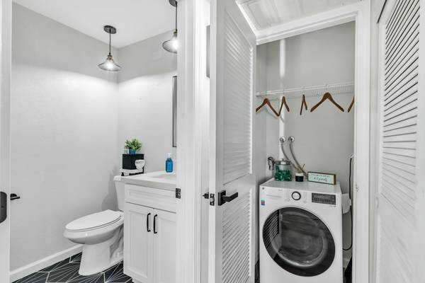 The primary bedroom is generously sized, with ample closet space and an attached full bathroom. An additional half-bath adds convenience for guests. The home’s contemporary finishes and neutral palette allow for easy customization to fit your personal style.