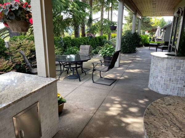 There is a sweeping patio with an outdoor kitchen, hot tub and raised bed gardens. The landscaping is fabulous and there is an automatic sprinkler/drip watering system to keep maintenance to a minimum.