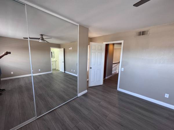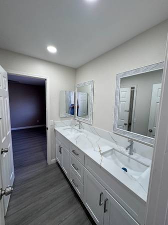 I have 1 LARGE master bedroom for rent upstairs!! It's a set up where there are 2 bedrooms connected by an en suite bathroom that's "jack and jill" style with a dual sink area that is shared. The room is large (about 13 x 16) with a large closet and plenty of cabinet storage space.