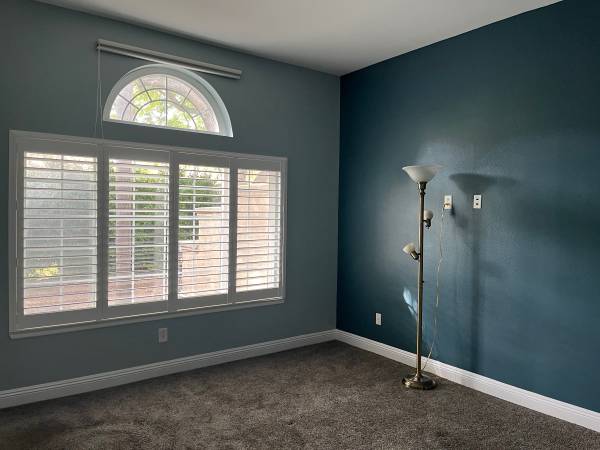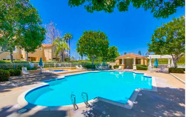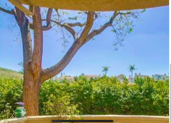 Available: 14 x 13 bedroom with an en suite bathroom, in a 2BR 2 BA 1226 sq. ft. condo in quiet, Belsera complex of Tierrasanta. Condo has a furnished open floorpan with Lux vinyl flooring, fireplace, stunning brickwork, and dine in kitchen. Bathrooms are remodeled, as is kitchen with stainless steel appliances, maple cabinets, and granite countertops. Bedroom has carpet, walk-in closet, fresh paint, new window coverings, and large bathroom. Covered carport included. Attached garage with storage area. Patio backs to Mission Trails Regional Park. Non-smoker, no pets.