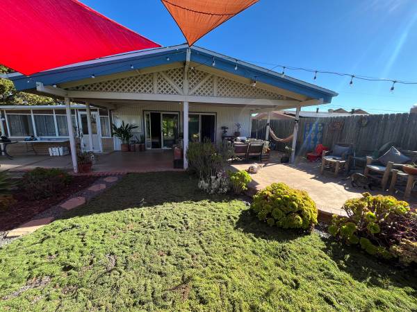 Large, beautiful backyard with Patio furniture, grill, fruit trees & passion fruit vines