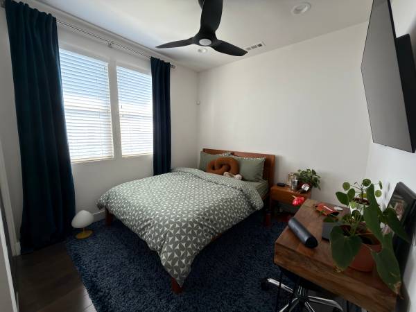 Private partially furnished bedroom/bathroom in a luxury 2000 sq. ft. condo in the heart of mission valley, in the Civita development. Utilities included (except EV charging), month-to-month terms, but strongly prefer long term (12+ month) intent to stay. No short-term inquiries please. Deposit is $1300.