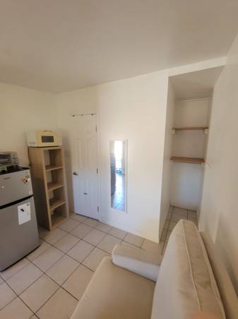 Room has a separate entrance in the back of the house. ADU style living so very private. NO access to the main house. No kitchen. No extra storage space.