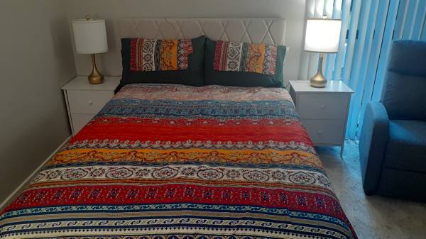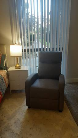 This is a cheerful, calm cozy home. Frequently there is cooking and baking (you can have some!) Your bedroom has a comfortable full size bed (and includes bed linens). nightstands and lamps and a recliner massage chair. Yes, you can come home at the end of the day, go in your private room and relax. There is a built-in closet. The bathroom next to your room is dedicated to your room. The room is cleaned weekly (including washing bed linens).