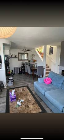 The upstairs bedroom in the 3bd/2ba townhouse is available. You have a great balcony facing east for the morning sun, and there's a ton of natural light that comes through throughout the day. You'll be sharing a bathroom with one of the roommates - all bathrooms are technically shared but the top is just closer.