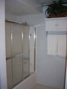 -Bathrooms have a tub/shower combo and cabinets ...has private bathroom, till room mate