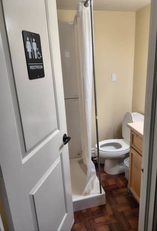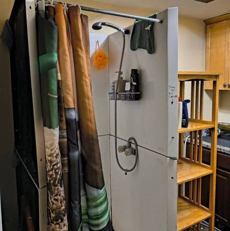 There is no kitchen area but there is a mini fridge in your room and microwave, hot plates and air fryer in common space . There are 2 shared bathrooms. Great space if you need temporary housing or long term if you don't need anything upscale or fancy.