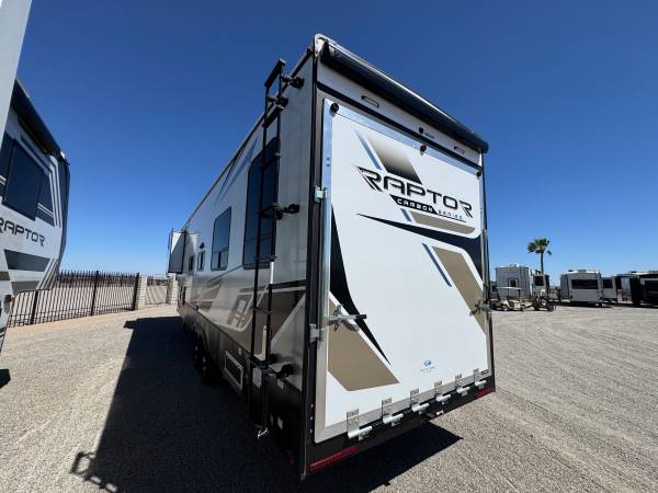 2024 Keystone RV Raptor Carbon Series 310WFO with 0 miles on the odometer. Priced at $69,950, this new fifth wheel toy hauler is designed for adventure, featuring a spacious 20 ft garage, dual A/C units, and solar energy capabilities. With sleeping accommodations for up to 7, it includes a queen bed, exterior camping package, and hydraulic auto leveling for ease. Don’t miss your chance for weekend exploration! Please message me for an appointment. #FifthWheel #ToyHauler #Camping #KeystoneRV