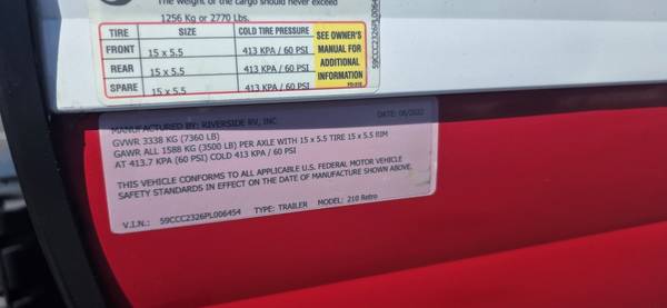 LINK TO 2023 RIVERSIDE RV RETRO 210 SPECS https://www.rvusa.com/rv-guide/2024-riverside-rv-retro-210-travel-trailer-specs-tr65249