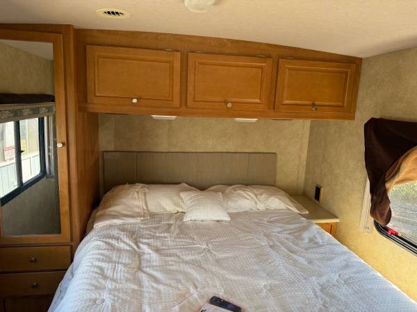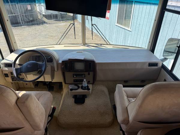 One large slide. Great condition. Auto leveling jacks. Extremely low mileage at 8,500 miles. One original owner. Current clean registration. Recent new tires. New 15,000 BTU roof AC unit. New house batteries. New smart TVs installed. Runs very smooth and easily starts up. Very clean inside and well maintained. Back up camera with volume. Original books and two complete sets of keys. Great RV to camp or live in. Ford V 10 engine. Generator and engine recently serviced.