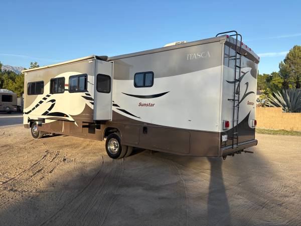 Hi I Am Selling A 2012 Itasca Sunstar 34Ft Class A With 29K original Miles On A Ford V10 Motor runs And Drives Great Birds Eye Camera View (Backup&Side View Cameras) Electric Awning Tires In Great Shape Hydraulic Leveling Jacks Dual Captain Swivel Chairs Dinette Sett Turns To Bed Sofa Sleeper With Extension For Extra Seating Gull Walk Around Bedroom Sleeps 6 Comfortably Full Kitchen With Dual Sinks 3 Burner Stove Oven&Microwave Refrigerator 2 Restrooms Stand Up shower Cold Dual A/C And Heater Clean Ca Title Current Registration Asking $29,900 Call Or Text For More Info (909) 760-9021