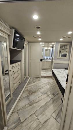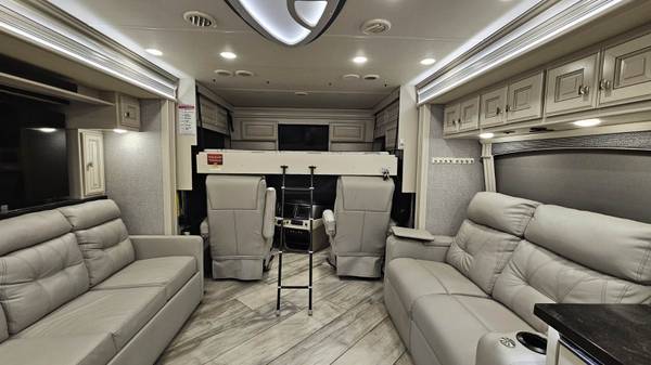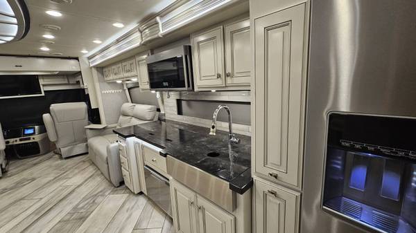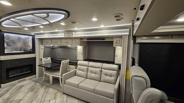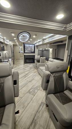 2022 Fleetwood discovery 40M LXE. Diesel pusher 380HP Cummings turbo. six speed Allison transmission. only 5K miles like brand new still smells like new automatic hydraulic leveling jack system double screen back up camera, side view cameras, LED awning lights, large power awning, under Body carriage lighting, full body paint, outdoor entertainment system with pull out drawers trays, bath and a half, spacious luxurious floor plan, leather recliners, sofa sleeper, power drop down bed, table has four chairs, large master bedroom suite with king size walk around access power bed, large his and hers wardrobe, lots of closet and storage space amazing spacious master bathroom double vanity sink with standup shower, high quality everything washer and dryer fireplace full kitchen with stainless steel appliances high-quality countertops with pull out additional counter space dishwasher large refrigerator extra center bathroom for guests This coach has it all one of the best of Fleetwood discovery built, beautiful lighting triple ACs this Coach is fully loaded. Has it all luxury on wheels condition is like new call (619) 622-2013