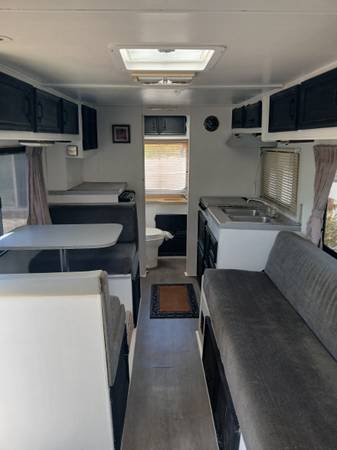 New truck & coach batteries, replaced windshield, new custom window screens & coach window tint, new vinyl floor, 3 new roof vents, new unused toilet, new shower head, shower valve & shower wallpaper, freshly painted coach interior, EternaBond RoofSeal vinyl tape applied to roof seams and vents.