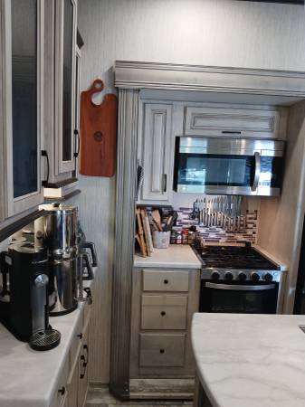 I’m selling a used 2023 Forrest River Sierra 3990FL with all accessories included, to include: Andersen goose neck hitch, Andersen stabilizer buckets, hitch stabilizer tripod, generator, and 2-in-1 washer dryer combo unit, (truck also for sale, will sell as combo for $110k). This unit was lived in full time by my family of 4 since delivery from the factory. Original video walk through is posted below. I have removed original living room couches, kitchen table/chairs, and replaced them with residential style ones that will transfer with sale. Master king size bed was removed from bedroom and moved to loft, and replaced with bunk beds, adding storage underneath. Storage cubbies were added to the closets for organization. Washer/dryer combo works great. Top of the line Goodyear tires in great shape with a ton of tread left.