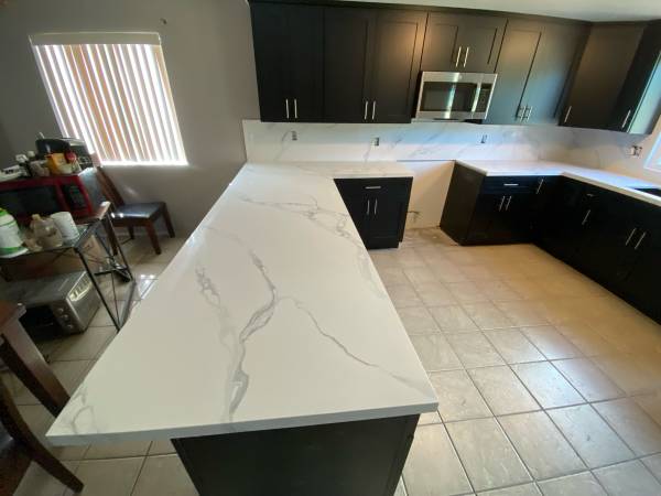 We specialize in fabrication and installation of quartz,granite, and marble. Give us a call/email and make an appointment for a free estimate.