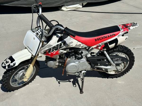 All stock and in great running condition. Just had a fresh oil change and carburetor rebuild, starts easily and runs great. Perfect little bike for kids, pit use, etc.