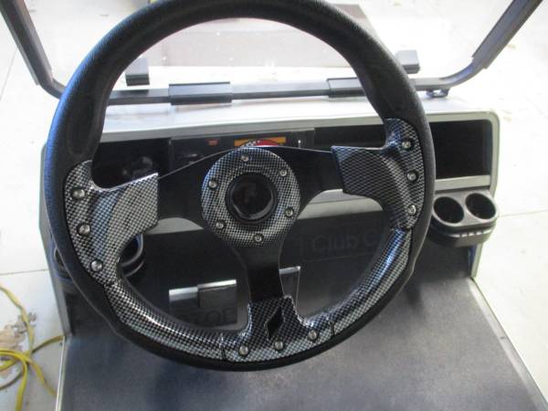 Very clean, always garaged, no sun damage. Always maintained, quality 48v Trojan batteries in excellent shape. High speed motor (25 mph), custom front seat upholstery (not cheap covers), glove boxes, chrome rims and good tires. LED lights.