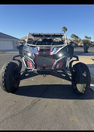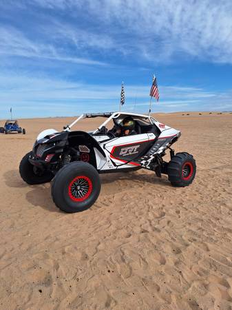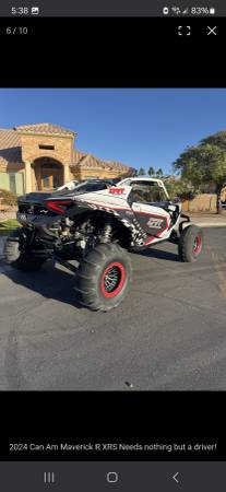 2024 Can Am Maverick R XRS. 1100 miles / 90 hours. This car is completely done. Needs nothing. Was built by RZR WERKS in Yuma, nothing was skimped on. Car was hardly driven last season and serviced regularly. Car has only been tuned on the 91 tune, but all the higher octane tunes are available on the code shooter. Launch control has never been used either. Wrap was done in September 2024 by Wrizz designs for the Sand Show and the sponsor logos can be removed. Has a set of 5 dirt wheels and tires, and a set of paddles and wheels. Parts list as follows: