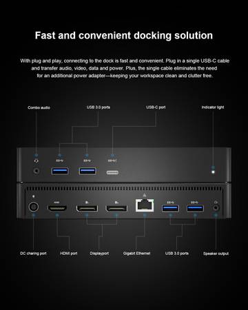 【Plug-and-Play Simplicity】-This docking station includes USB 3.0 and USB-C ports for flexible host connectivity.